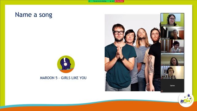 Por isso, na sexta-feira, dia 14 de maio, os alunos da inFlux Salto participaram de uma atividade divertidíssima on-line sobre o assunto! Os estudantes relembraram alguns clássicos da e conversaram sobre diversas curiosidades envolvendo a arte de fazer música e sobre os artistas também. Todos se divertiram muito relembrando e cantando as trilhas sonoras de filmes que marcaram os anos 2000! Confira algumas fotos desta atividade extra!