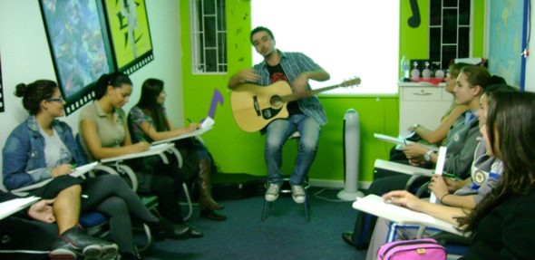 O Music Session da inFlux Portão, que aconteceu na última sexta-feira, foi um sucesso! Foram duas sessões, à tarde com kids e teens, e à noite, para adultos. Os teachers Jorge e Luiz deram um show e os alunos divertiram-se bastante! A trilha sonora ficou por conta de Pearl Jam, AC/DC e Guns & Roses. Houve, ainda, um jogo de “What’s the song@f0” no qual os alunos tinham que adivinhar o nome da música e cantar um trecho dela. Lady Gaga, Rihanna, The Beatles, Bob Marley e muitos outros fizeram parte do repertório. Os alunos praticaram a habilidade de listening e aprenderam várias expressões novas! Vejam o que os alunos acharam: