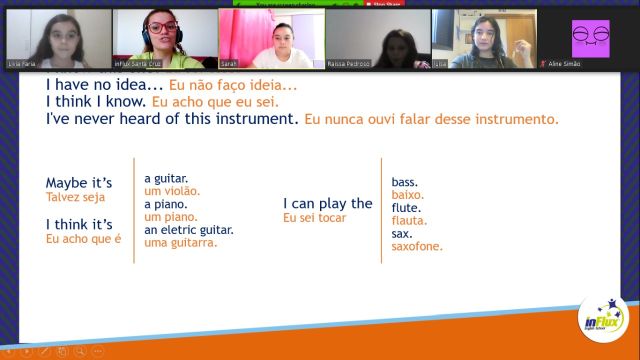 Os alunos das modalidades Kids e Junior, da inFlux Santa Cruz do Rio Pardo, participaram de uma atividade pra lá de musical. Nesta atividade extra foi trabalhado chunks, expressões e vocabulários voltados para essa temática, os estudantes interagiram e praticaram inglês por meio de jogos envolvendo músicas e cantores que estão em alta no momento. Deste jeito, é ou não é mais prazeroso aprender um novo idioma? Confira nas fotos!