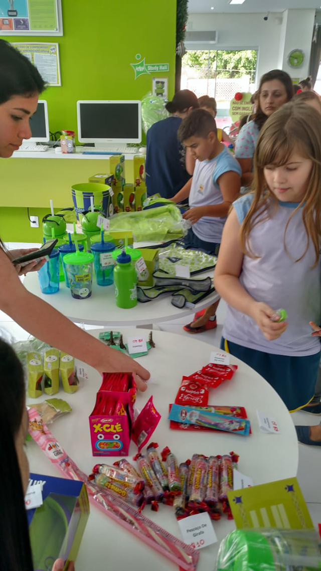 Na inFlux São Francisco do Sul não é diferente. Com ajuda dos instrutores da unidade, os alunos foram as compras usando vocabulário, expressões e chunks que aprenderam durante o curso. Na lojinha havia produtos inFlux, brinquedos e também guloseimas. Esta atividade simples proporcionou aos alunos uma situação muito comum no dia a dia de qualquer pessoa.