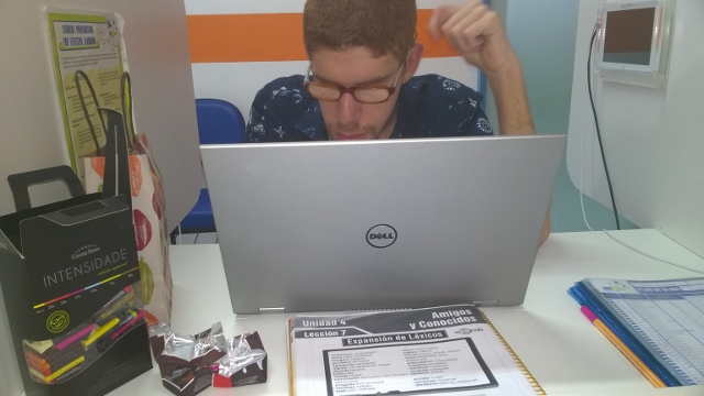 Foi então que, com um computador, uns fones de ouvido, o CD do aluno, o CD do caderno de exercícios e a animação e expectativa de ambas partes, começamos o livro 1, que foi concluído com êxito. E agora, mal podemos acreditar, chegarmos ao livro 4!