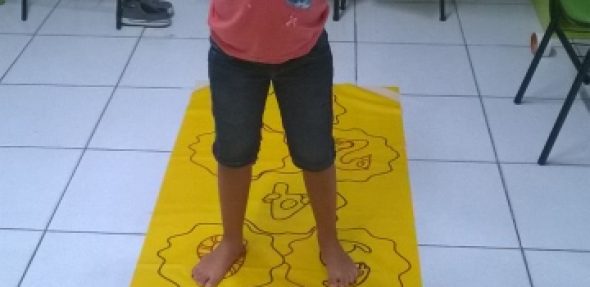 Essa aula foi bem empolgante, pois a teacher Lu trouxe para a turma um jogo bem tradicional: a amarelinha! O objetivo do jogo era aprender os números e diferentes movimentos do corpo!