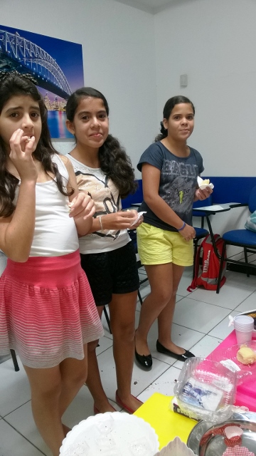 Imaginem! Fizeram um picnic e levaram lanches! É isso mesmo: LANCHES. Cada aluno oferecia o alimento que preparou usando os conteúdos estudados na aula! Foi uma DELÍCIA de atividade.