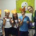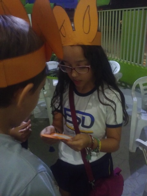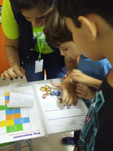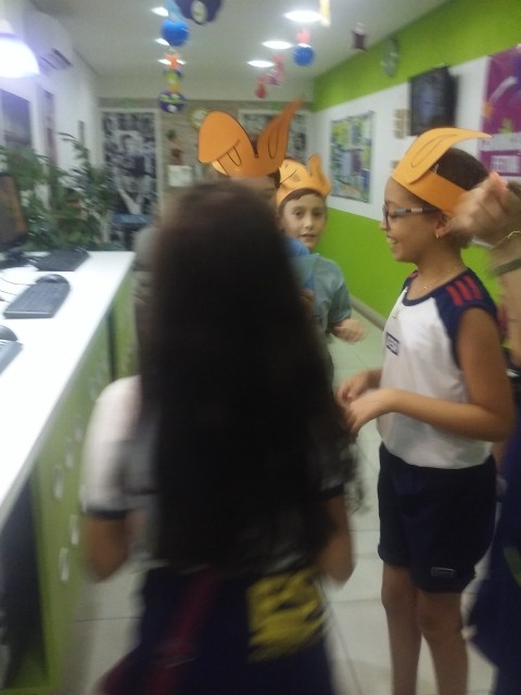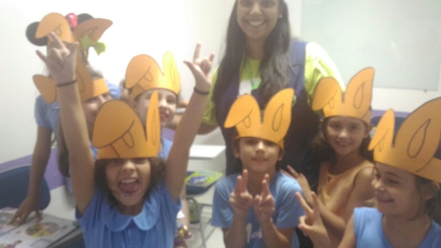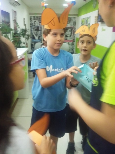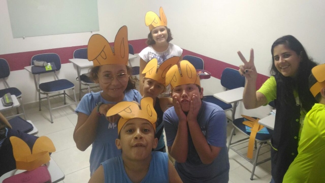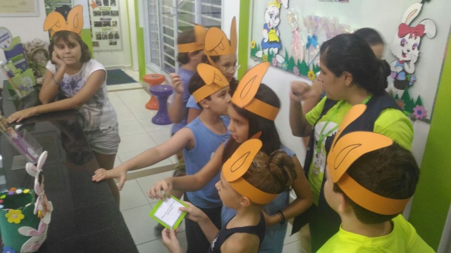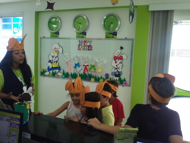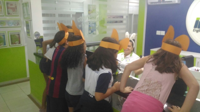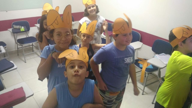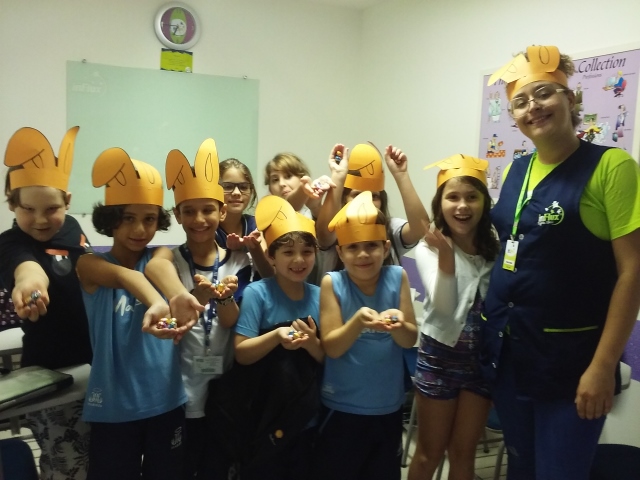 O desafio era encontrar o Pote de Ouro com muitos ovinhos de chocolate! Foi uma festa só! Alegria e aprendizado, porque enquanto se divertiam colocavam em prática o seu conhecimento no inglês e aprendiam novas expressões e palavras!