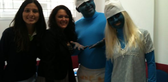 O Movie Session sempre foi uma das atividades extras mais esperadas pelos alunos da inFlux Pinheirinho, pois além de assistir um filme e aprender novas expressões em inglês, os alunos têm a honra de conhecer os personagens que mais fazem sucesso em Hollywood (Russel – Up, Hatter – Alice in Wonderland, Buzzlightyear – Toystory, Jake – Avatar,…). Nesta última sexta-feira não podia ser diferente, a inFlux Pinheirinho estrelou o filme “The Smurfs” e contou com a presença de dois ótimos e queridos Smurfs (Smurfette & Clumsy). Os alunos que participaram deste evento ficaram ainda mais motivados em aprender expressões como: “I smurf you = I love you”, “Let’s get smurfing!= Let’s get movig”, “Oh my smurf = Oh my God”, entre outras usadas no filme. Os dois smurfs presentes gostariam de agradecer a equipe de produção & maquiagem (Silvia Trindade, Jessica Leal e Tatiane Cavilha). Vejam as fotos abaixo de mais um smurficioso Movie Session!