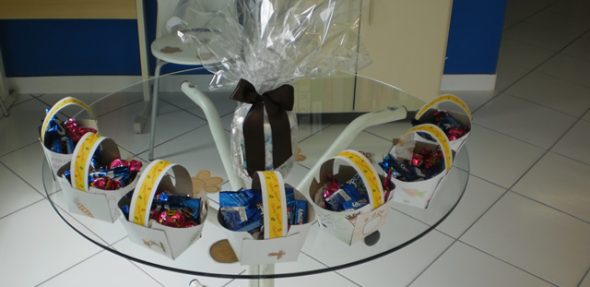 Eles confeccionaram as cestinhas que foram “recheadas pelo coelhinho”.