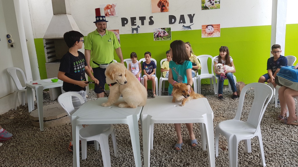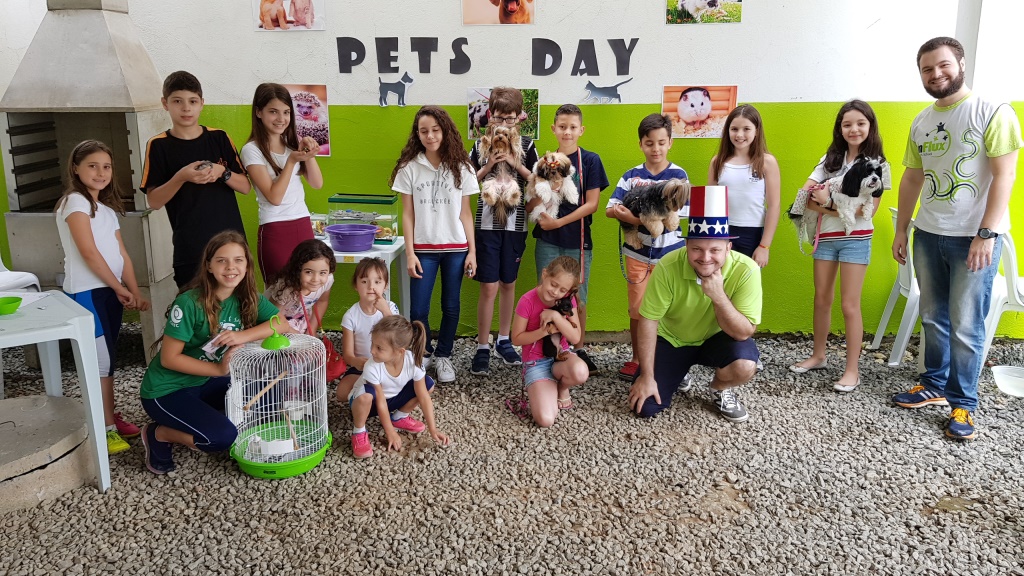 Já imaginou aprender inglês na companhia do seu animal de estimação? No inFlux Pets Day é assim! A última edição do Pet’s Day foi realizada na sexta-feira, dia 17/11. Uma atividade desenvolvida especialmente para nossos alunos poderem praticar o que viram em sala e ainda aprender várias palavras e expressões novas de um modo superdescontraído. Os pequenos trouxeram seus animais de estimação para apresentar aos coleguinhas, participaram de atividades, interagiram com todos de um jeito muito divertido e ainda aprenderam muitas curiosidades sobre a vida dos pets! Todos se divertiram pra valer!