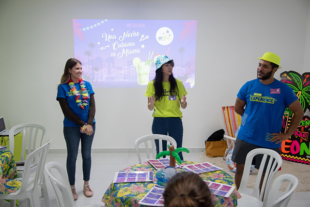 Os participantes foram transportados para o clima dos bares de Miami os quais sofrem muita influência da cultura latina. Assim puderam praticar inglês e espanhol além de experimentarem as tradicionais empanadas e os tostones cubanos. Para matar a sede, puderam provar Mojito e Piña Colada.