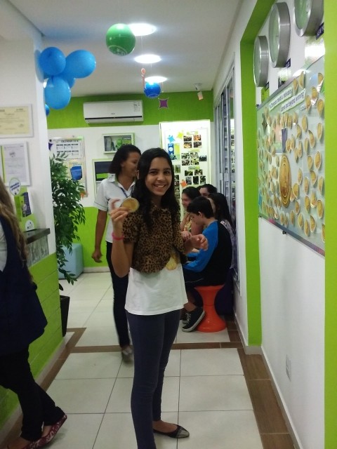 E para surpreender nossos alunos e alunas, aproveitando que estamos no clima das Olimpíadas, recepcionamos a todos convidando-os a encontrar a sua Medalha Dourada! Foi gratificante como todos curtiram!