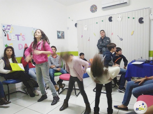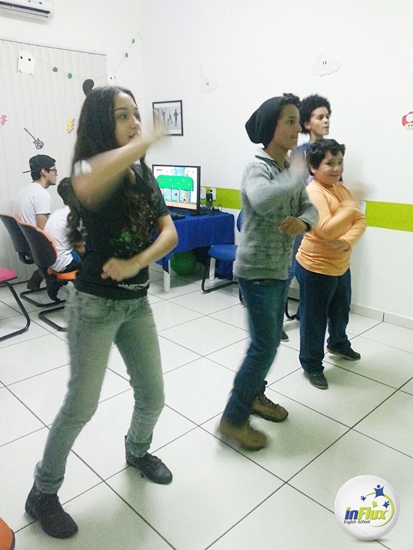Na atividade foram trabalhadas algumas expressões utilizadas por jogadores, como: “Press the button”, “Stage Clear”, “Jump on top of the enemy”, “Who’s winning?”, “Select your character”, “Follow the movements” and “You rock!” e depois os alunos puderam aproveitar um pouco de cada jogo.