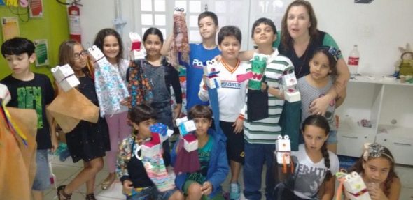 O Handcraft dos nossos kids foi simplesmente sensacional. A criatividade em fazer os bonecos de materiais recicláveis e depois dar nomes às personagens foi extraordinária. Que o diga “Mr. Pepino”, personagem criado por nosso aluno Mateus.