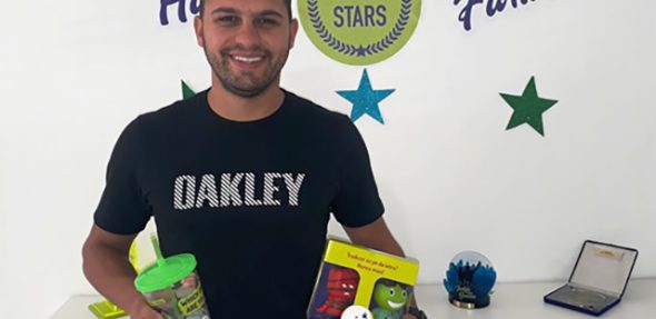 Ele pontuou 2800 no último Categories de julho e levou para casa um kit contendo o mascote Fluxie e um copo personalizado inFlux.