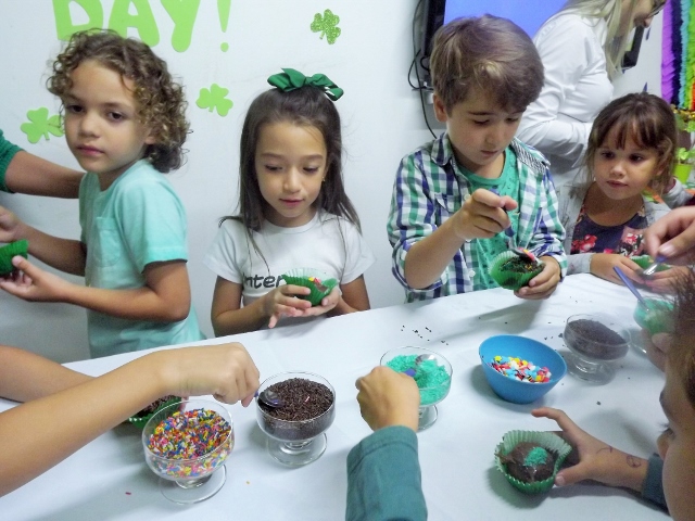 Nossos alunos também colocaram a mão na massa e fizeram um delicioso cupcake, tudo isso em inglês, of course!