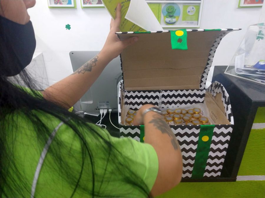 Mas, não parou por aí: os alunos tiveram outras chances de ganhar suas moedas de chocolate! Eles tiveram que responder perguntas relacionadas ao tema, como, por exemplo, Where do Leprechauns hide the gold they find? (Onde os Leprechauns escondem o ouro que encontram?). Você saberia responder?