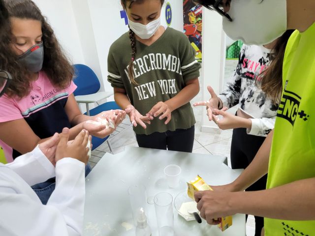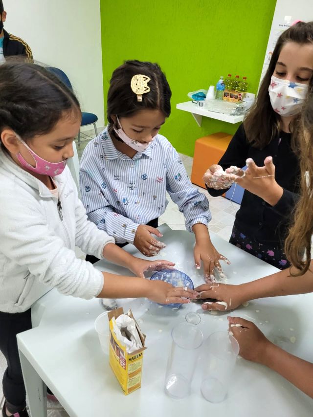 Os alunos realizaram três experimentos incríveis, descobrindo o que é um fluído não newtoniano, como alguns animais conseguem sobreviver nos lugares mais frios do planeta e como um bolo cresce! Awesome, right?