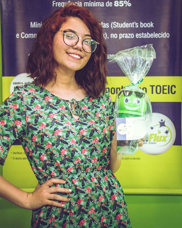 Para os alunos iniciantes do Book 1, foi sorteado um copo do Fluxie. Quem ganhou foi a Maria Eduarda Roncolato.