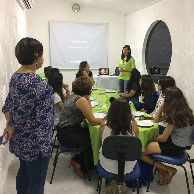 Tivemos um delicioso jantar com vários pratos típicos e eles puderam praticar também o inglês aprendido em sala.