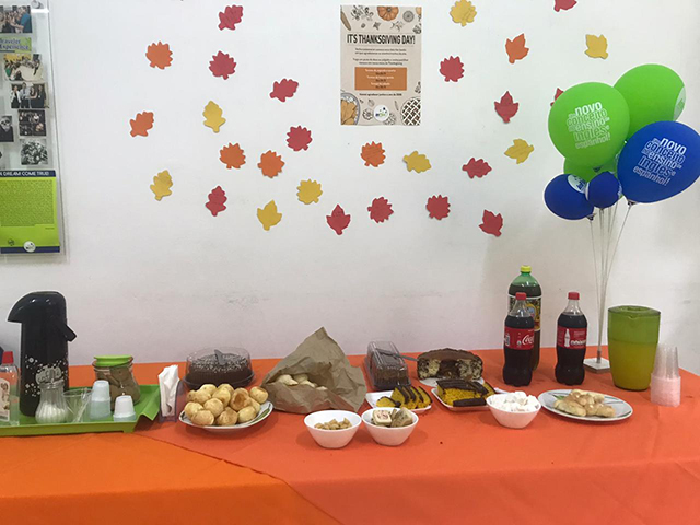 Na semana do Thanksgiving Day, os alunos da inFlux Uberlândia Centro foram convidados para celebrar essa data tão linda com a equipe da unidade. Foi um dia para expressar gratidão por todas as coisas boas que aconteceram ao longo do ano, e para isso, cada aluno trouxe um lanchinho para compor a mesa e agradecer o ano de 2019 juntos.