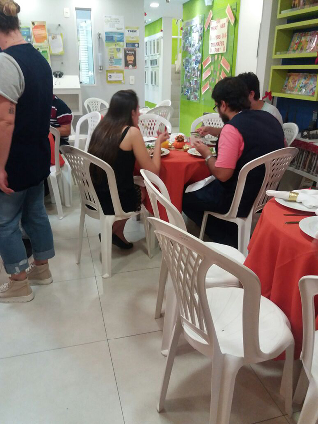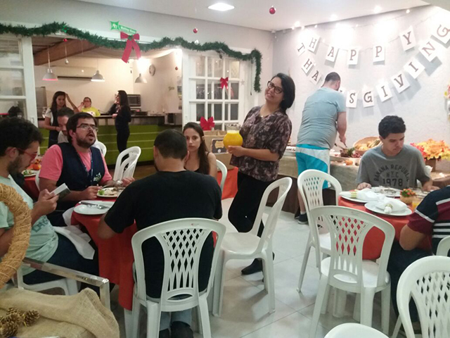 O jantar de Ação de Graças, em 17/11, foi um momento super especial, pois, além de aprendermos um pouco sobre a história dessa celebração internacional e chunks para expressarmos os motivos pelas quais somos gratos, trocamos receitas de pratos tradicionais em nossas famílias. Tudo isso com muita comida deliciosa, bate-papo agradável, e arrecadação de alimentos não perecíveis para doação! Na inFlux é assim, temos experiências que estimulam e resultados que surpreendem!