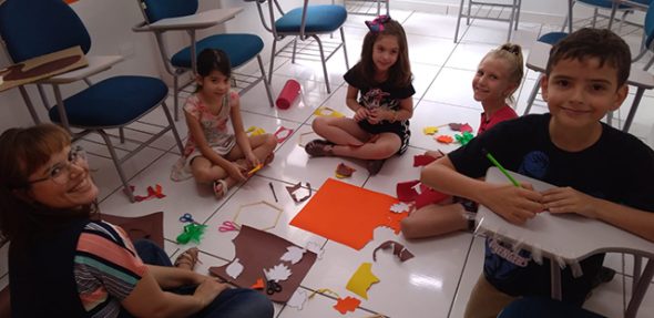 Através de várias atividades relacionadas a essa data, todos puderam praticar inglês se divertindo. Cada participante fez a sua própria guirlanda de Ação de Graças, ajudou a colocar as penas no Peru de cartolina, acrescentou um agradecimento a farta cornucópia, e além disso, desfrutaram de um belo banquete feito com a contribuição de cada um.