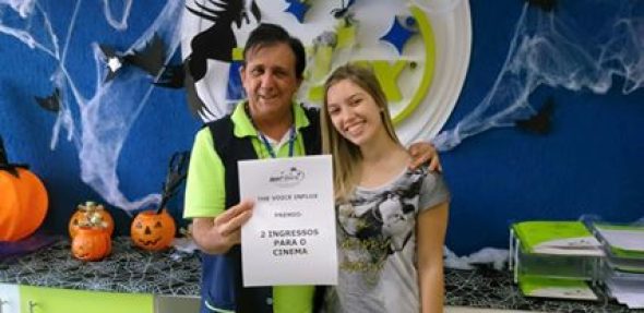Durante uma semana, os alunos dos cursos de inglês e espanhol se divertiram com a competição musical. Cada participante ganhou um bombom para cantar. O corpo de jurados foi composto por professores e coordenador da unidade Bauru e como prêmio, a melhor performance foi contemplada com um par de ingressos para o cinema. A grande vencedora foi a aluna Ana Beatriz do Book 2. Congrats, Bia!