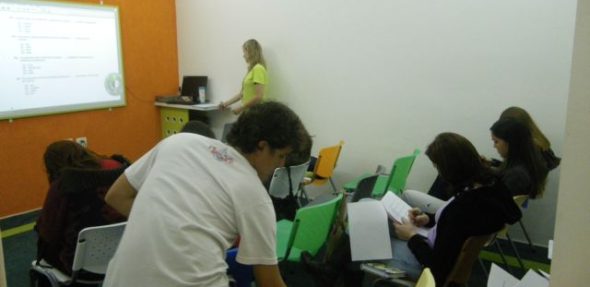 Eles participaram de uma aula especial com dicas para ficar fera para a prova. Nesta aula os alunos praticaram o “reading” com exercício no estilo TOEIC.