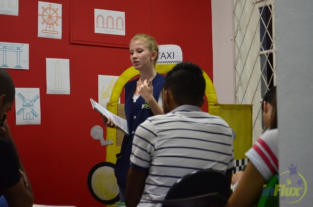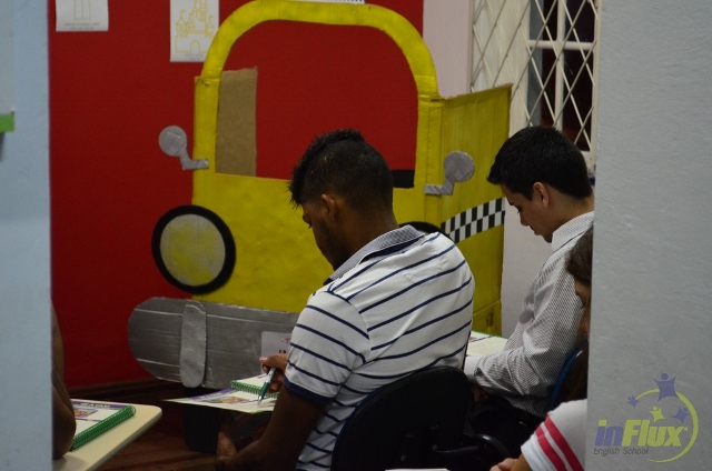 Os alunos da Influx Jaraguá continuaram a experiência do Influx Traveler com a situação de pegar um táxi.
