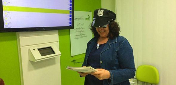 Nossos alunos foram perfeitos representantes da lei na nossa aula de Traveler. Com a cara e a coragem, e o apoio de um distintivo, eles ajudaram pobres turistas a encontrar seus pertences perdidos.