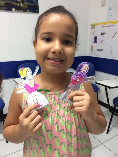 A aula do dia 26/08 foi muito legal. A turma aprendeu as profissões em inglês através de uma atividade bem lúdica e divertida. Foram impressas em cartolina, vários desenhos das diferentes profissões, e, enquanto a professora falava sobre elas e ensinava frases, expressões e vocabulário, as crianças coloriam e cortavam os desenhos.