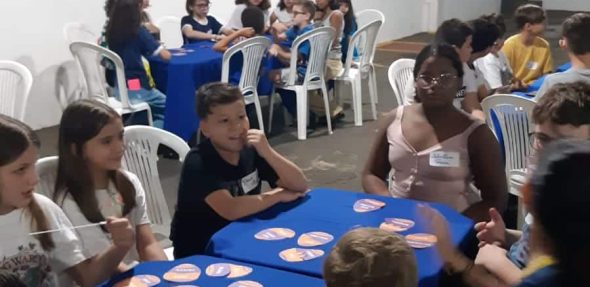 Tudo foi feito de forma lúdica, para que se sentissem seguros e confiantes ao usar o inglês durante toda a experiência.