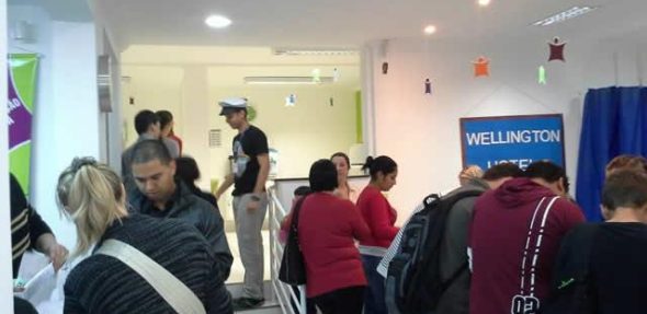 e simularam uma situação de viagem fazendo check-in no hotel, pegando um taxi para visitar pontos turísticos, fazendo compras em uma loja,