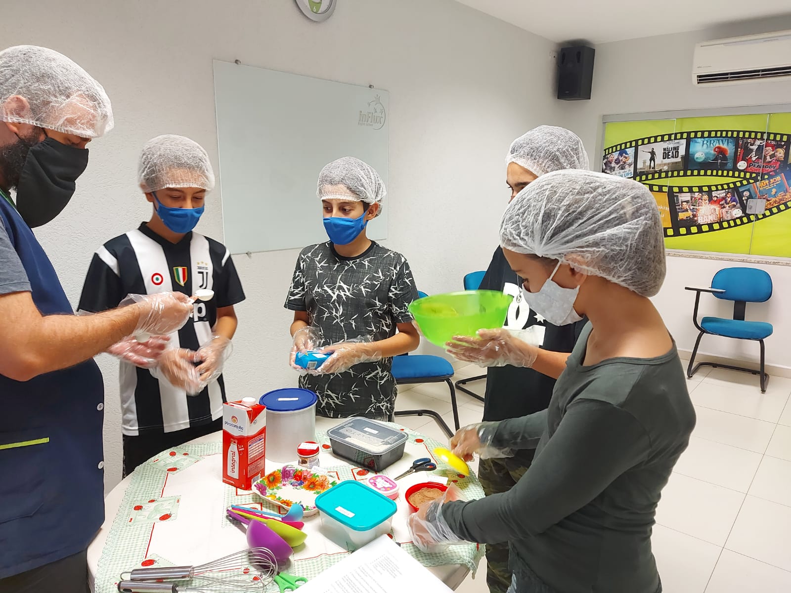 Os alunos Juniors e Kids da inFlux Rio Claro participaram das atividades de férias. Foram 3 dias de muita diversão e prática do inglês, com direito a Cooking Class, Movie Session e muita bagunça com o Face the Pie!
