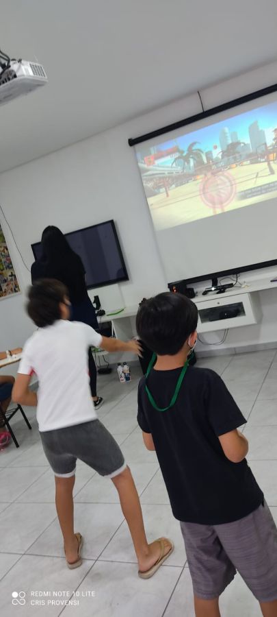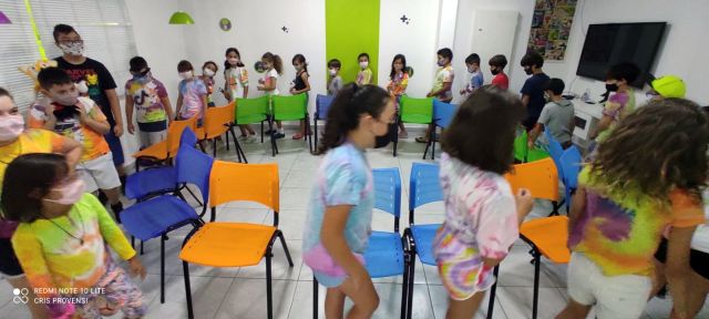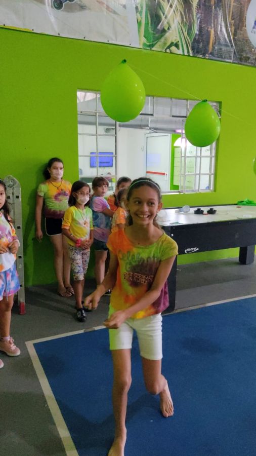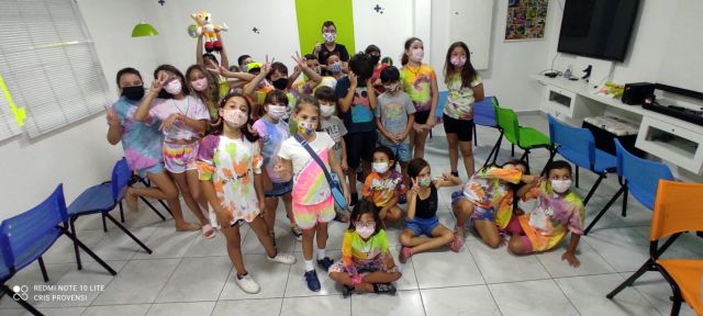As crianças aproveitaram seu tempo livre e colocaram o inglês em prática através de várias brincadeiras. Os alunos produziram camisetas Tie-Dye, tiveram uma sessão cinema com direito a pipoca e travesseiro, um dia de jogos bem divertidos e para fechar com chave de ouro, uma festa bem colorida com muita tinta!