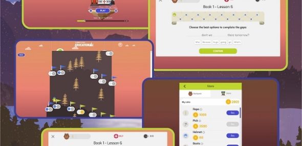 Ao clicar em “PLAY” o aluno será levado para a montanha (Mount Fuji – Japan, por exemplo, que é a montanha do Book 1). Na montanha, ele vai encontrar bandeirinhas que correspondem às lições do livro, além do “Climber Guide”, que dará acesso a outras funções do jogo, como testes, acampamento e o encontro com o misterioso “Traveler Fluxie”. Cada nível corresponde a uma lição, e aparece uma mensagem para que o aluno saiba que se ele ainda não teve a lição, talvez ele não saiba responder tudo.