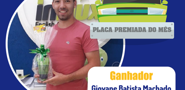 O aluno Giovane Batista Machado, que está cursando inglês na inFlux Santa Cruz do Rio Pardo, colou o adesivo da inFlux no seu veículo e foi sorteado na promoção Placa Premiada. O sortudo ganhou um lindo copo do Fluxie.