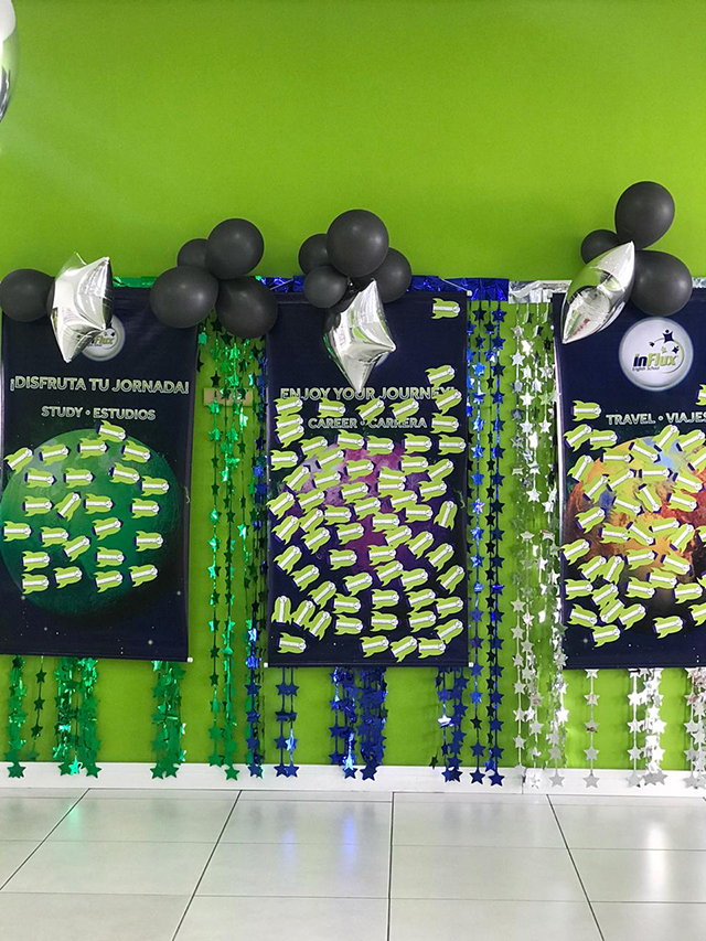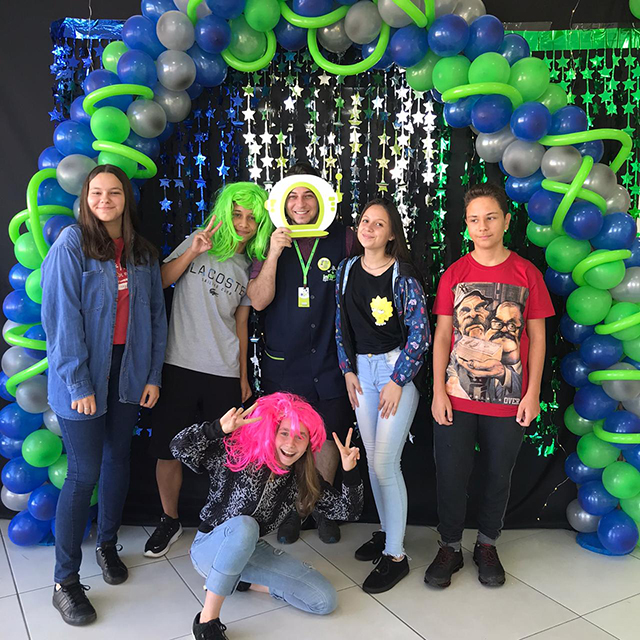 O tema escolhido para representar os semestres desse ano foi Universo inFlux, com uma decoração inspirada nas galáxias e planetas para representar a jornada dos alunos em seus estudos.