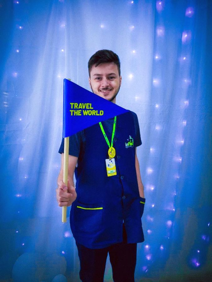 Logo na recepção novos alunos e veteranos foram convidados a tirar uma foto com uma bandeira ilustrando o sonho que cada um deles quer conquistar por meio de um inglês e espanhol fluente. A unidade montou um espaço “instagramável” com o tema “Sonhos” para as fotos. Foi um momento incrível! Além disso, cada aluno recebeu marshmellows como símbolo de boas-vindas para este semestre tão importante.