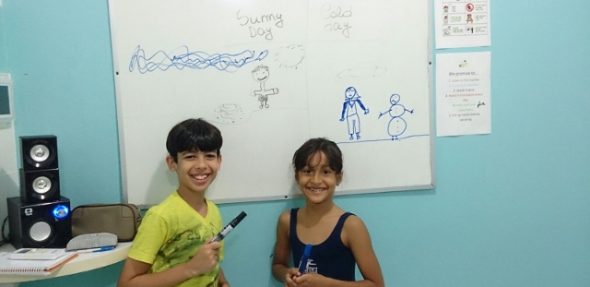 Eles ficaram muito animados e contentes ao conseguir se expressar em inglês!
