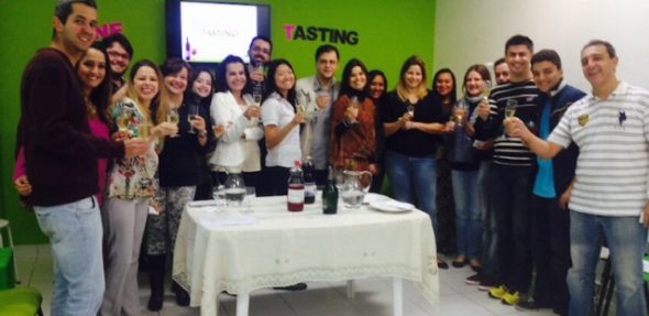 A noite de sexta-feira, 29 de maio, foi um sucesso na inFlux BH Buritis! Primeiramente, os alunos maiores de 18 anos tiveram uma aula de inglês em que aprenderam diversas expressões relacionadas à degustação de vinho, além de muito vocabulário novo. Depois disso, eles assistiram uma apresentação em inglês explicando como se degusta um vinho. E por último, claro, eles foram para a prática e degustaram mais de sete tipos de vinho. Além disso, também aprenderam harmonizar os vinhos com diferentes pães, patês, carnes e até sobremesas.