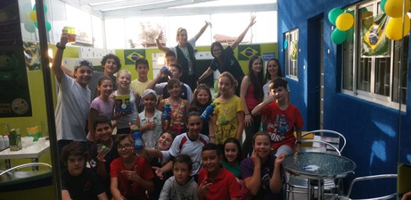 Nossos alunos e seus convidados testaram seus conhecimentos sobre a copa, trocaram figurinhas do álbum da copa e (o mais esperado) deram e levaram muitas tortas na cara!
