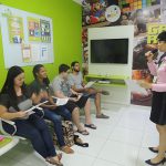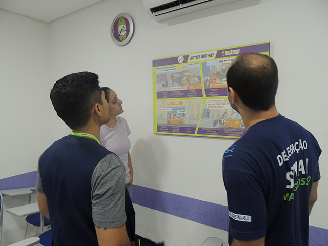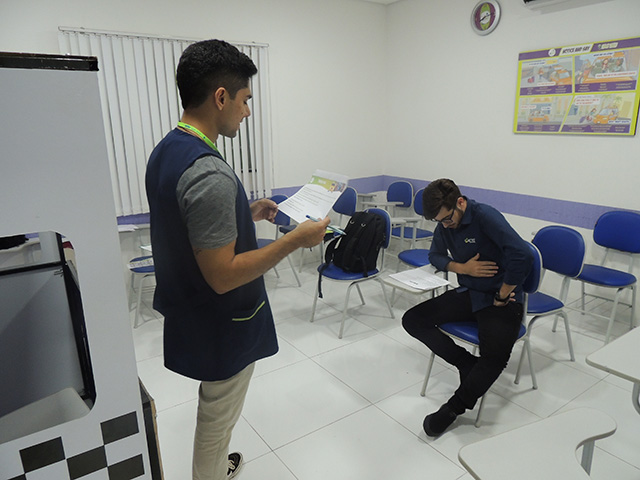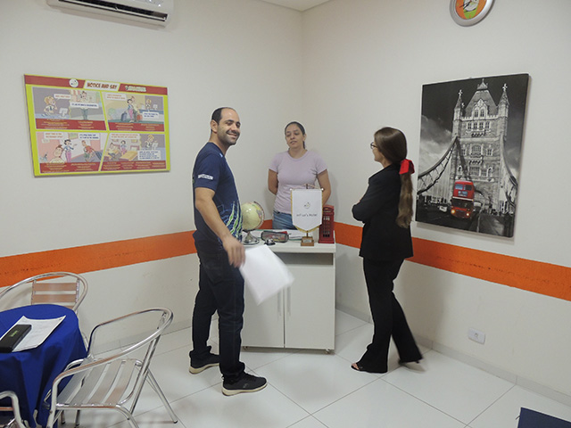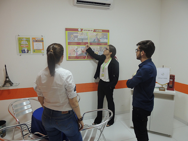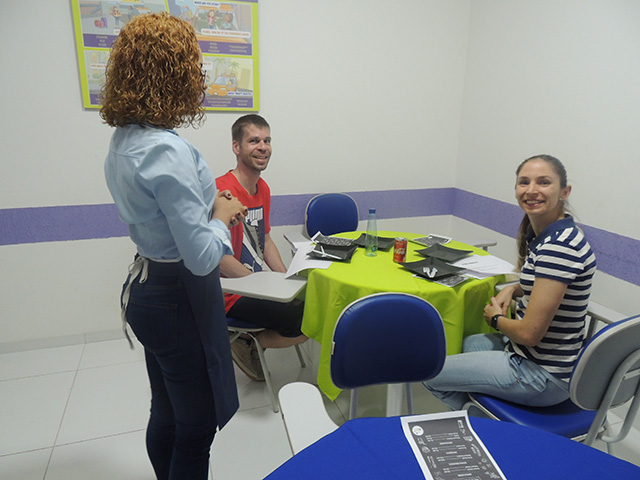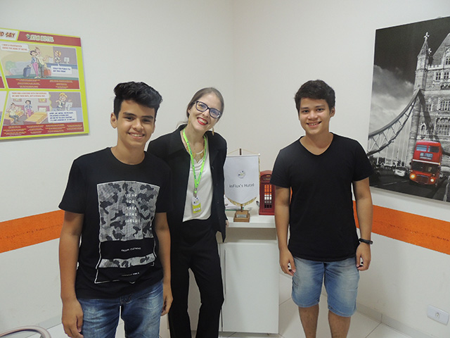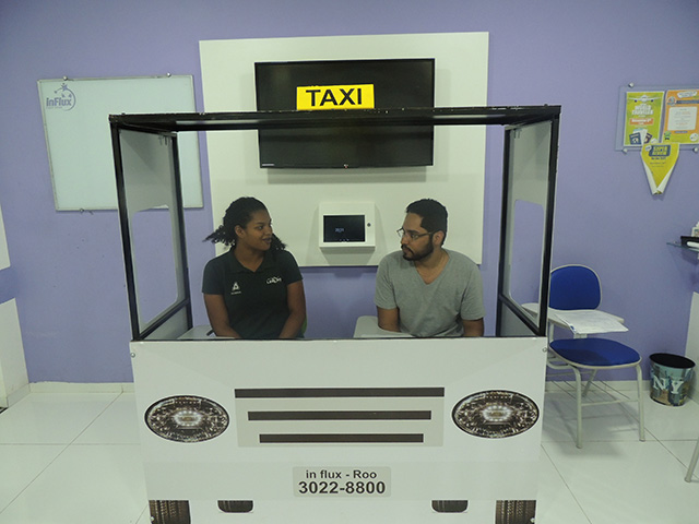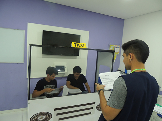 Em um dos cenários, os alunos entraram no táxi. Com muita descontração, simularam os diálogos e falas necessárias nesse contexto tão usado em viagens. No cenário seguinte, tiveram a oportunidade de vivenciar uma situação dentro de uma loja de roupas, montada dentro da sala de aula. Em outro ambiente motivador criado dentro da escola, o professor recepcionou os alunos e eles simularam o check in e check out no hotel. Os alunos também fizeram o check in no aeroporto, bem como puderam aprender os comandos passados pela comissária de bordo dentro da aeronave e treinaram expressões em um cenário de restaurante.